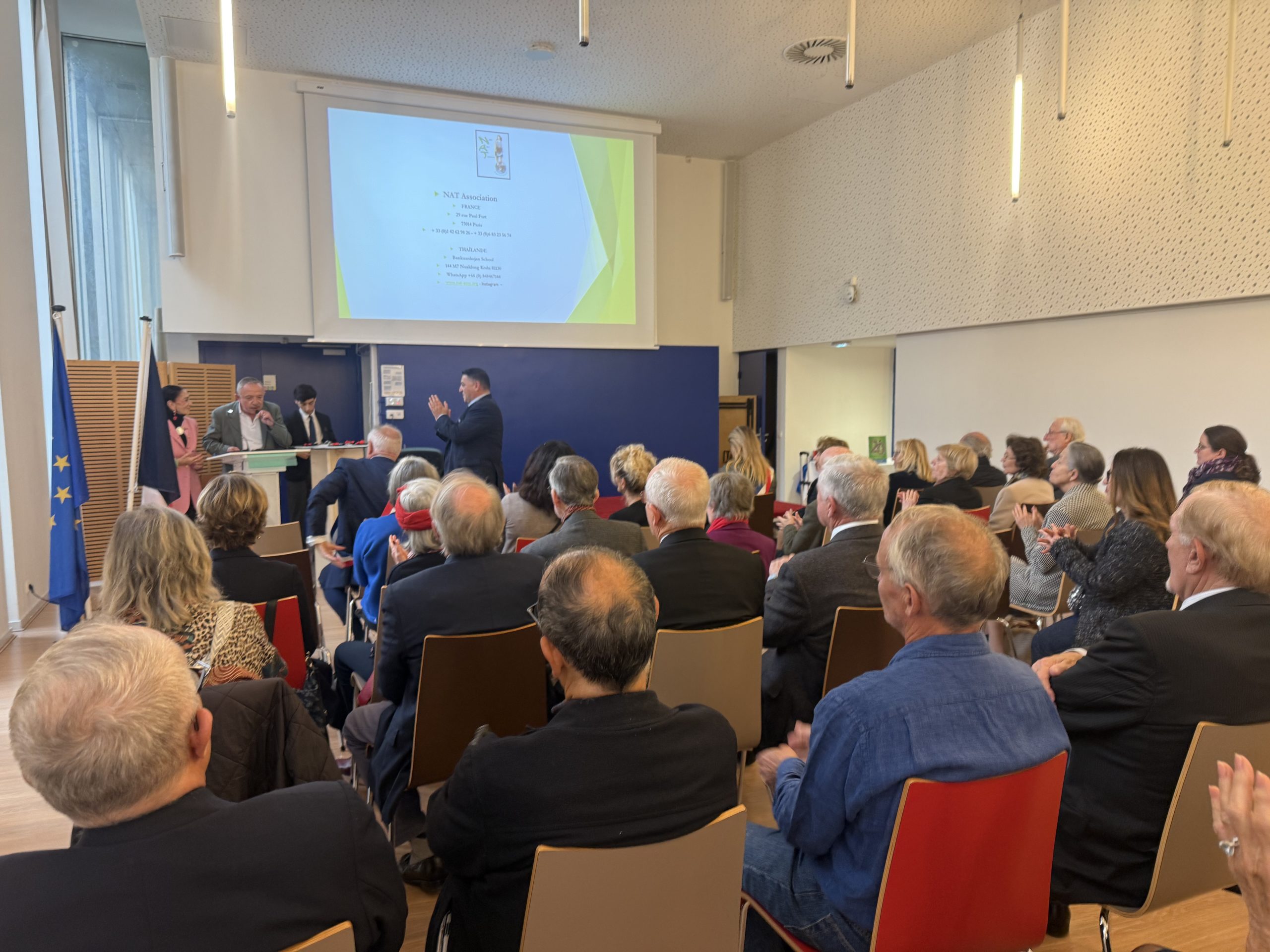 La cérémonie s’est ouverte sur un temps fort de solidarité avec la présentation de l’association “Nat en Thaïlande” par Élisabeth Zana, membre active de la SMLH.